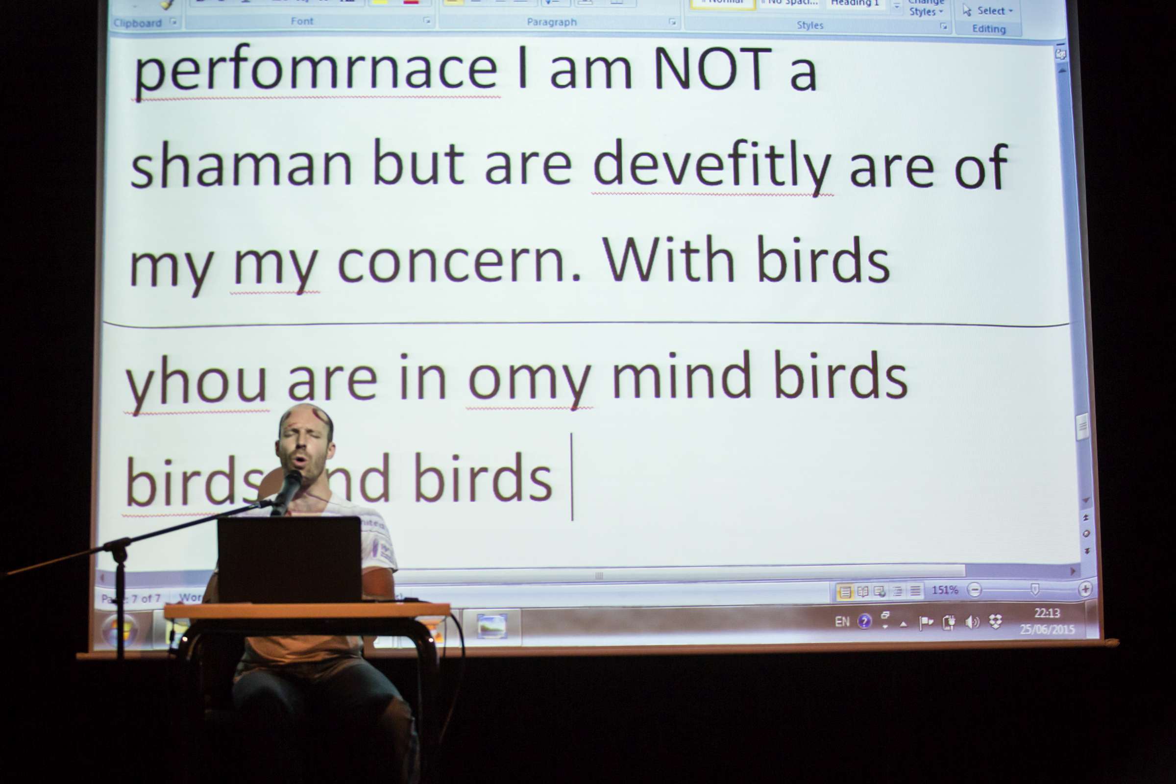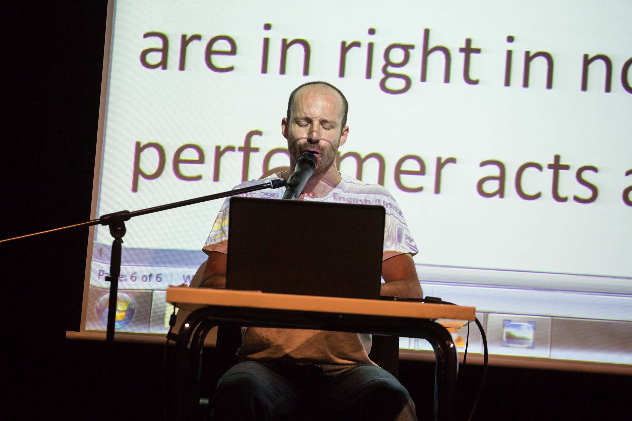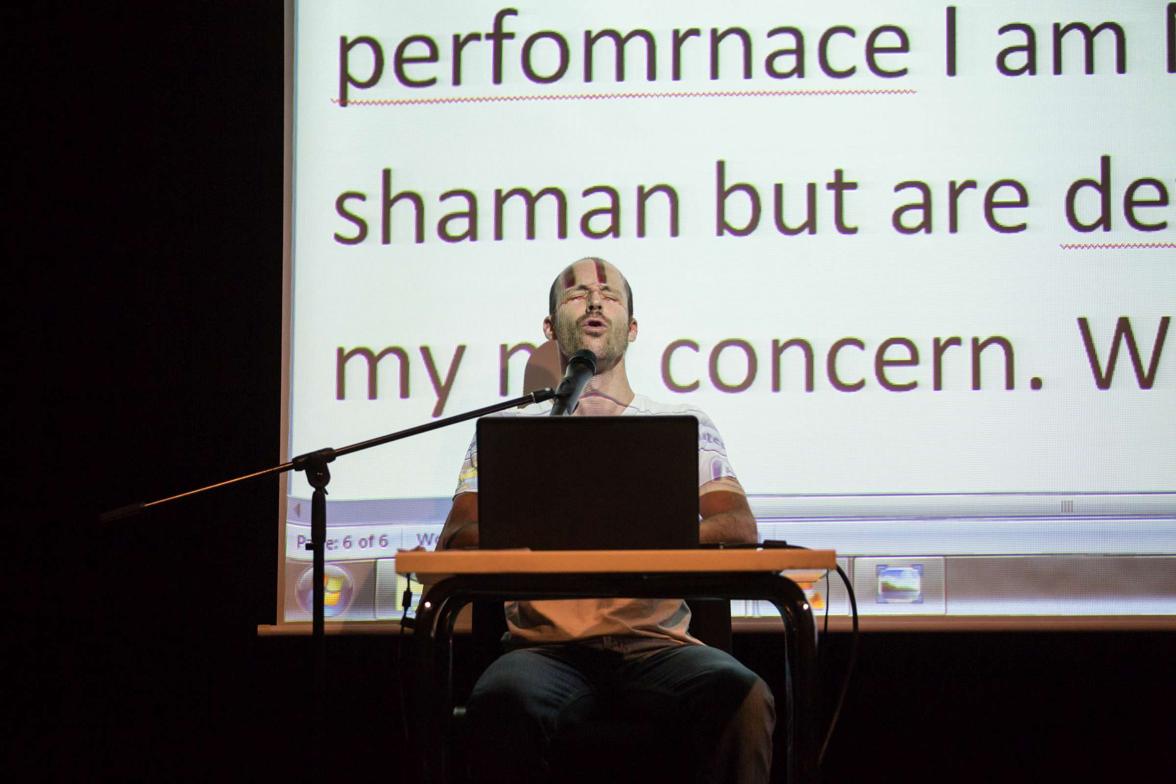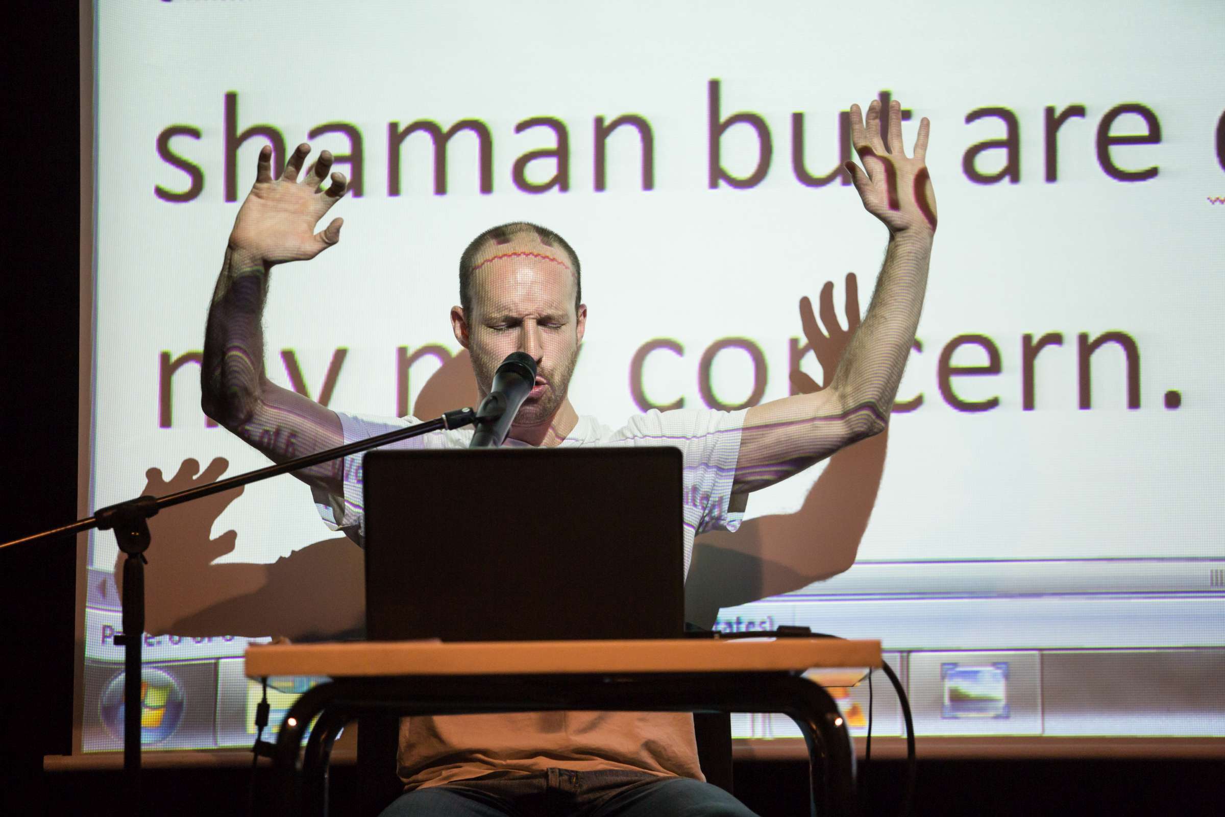 I am drawn to practices that pertain to excited and ecstatic performing states. These encompass physical, emotional and spiritual realms and the pathways in which they are produced and reproduced as an artistic practice. I am interested in spectatorships that arise for a public that is being presented with a performer’s personal experience or in other words, his or her own “trip”. What kind of affective powers do hyper states of existence, such as hyperventilation, have on spectators and how can these performances become contextualized as an engine empowering social and political critic. During the lecture I will talk about and present some of the methods I work with and show how they have been staged as public events and live performances in Israel and elsewhere. (Asher Lev)