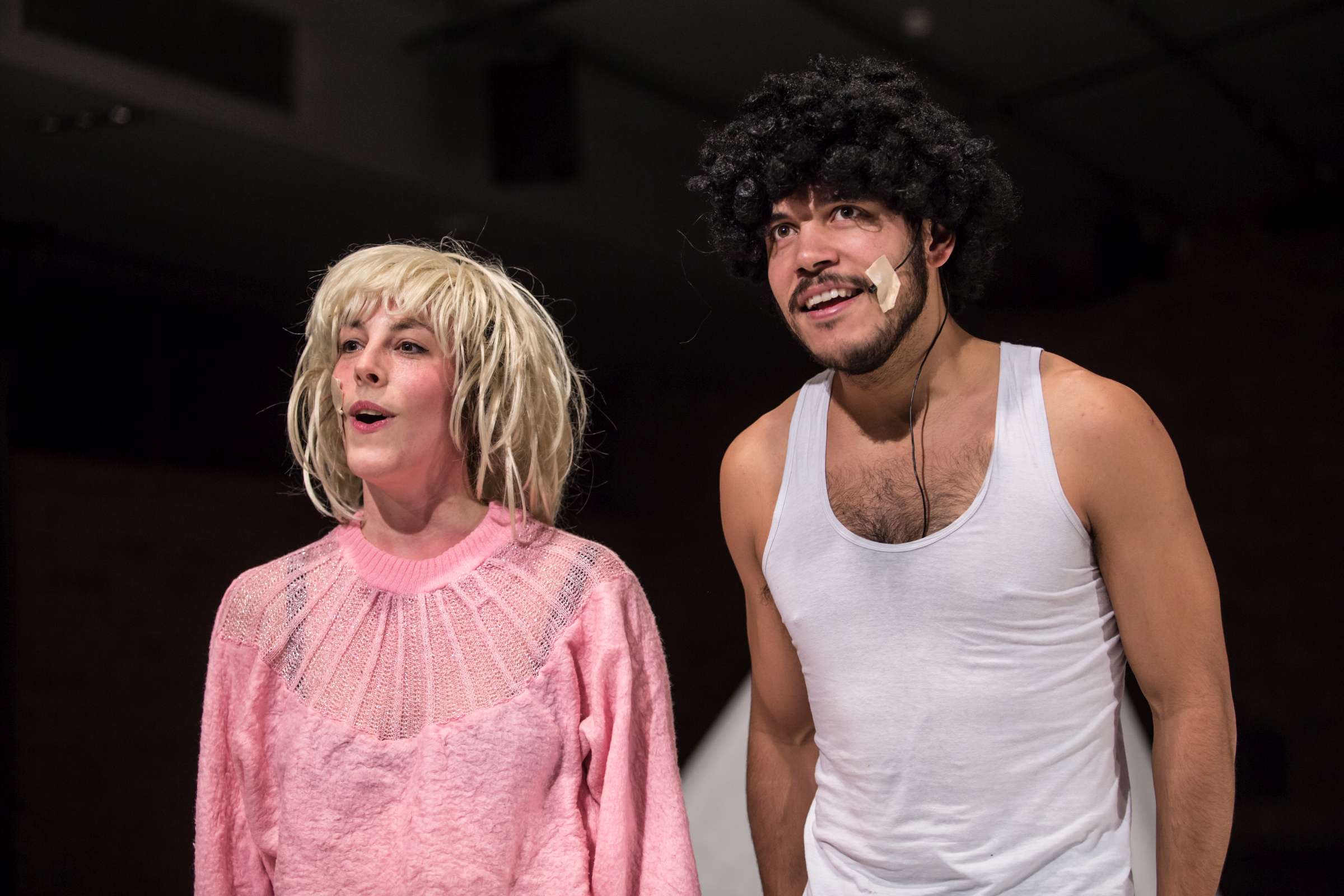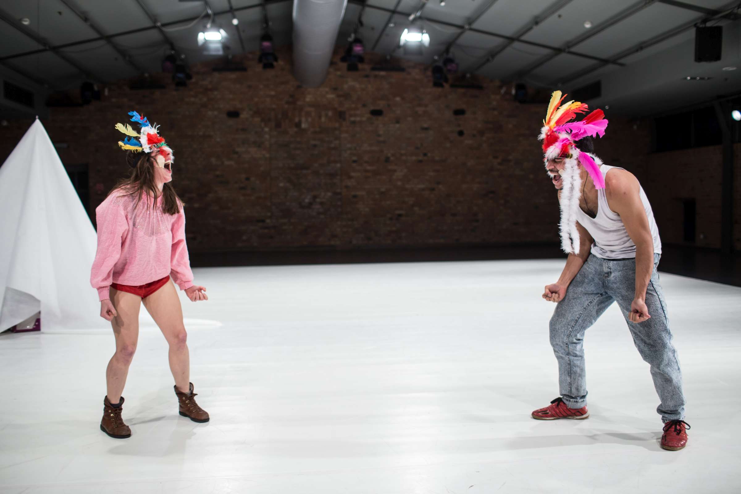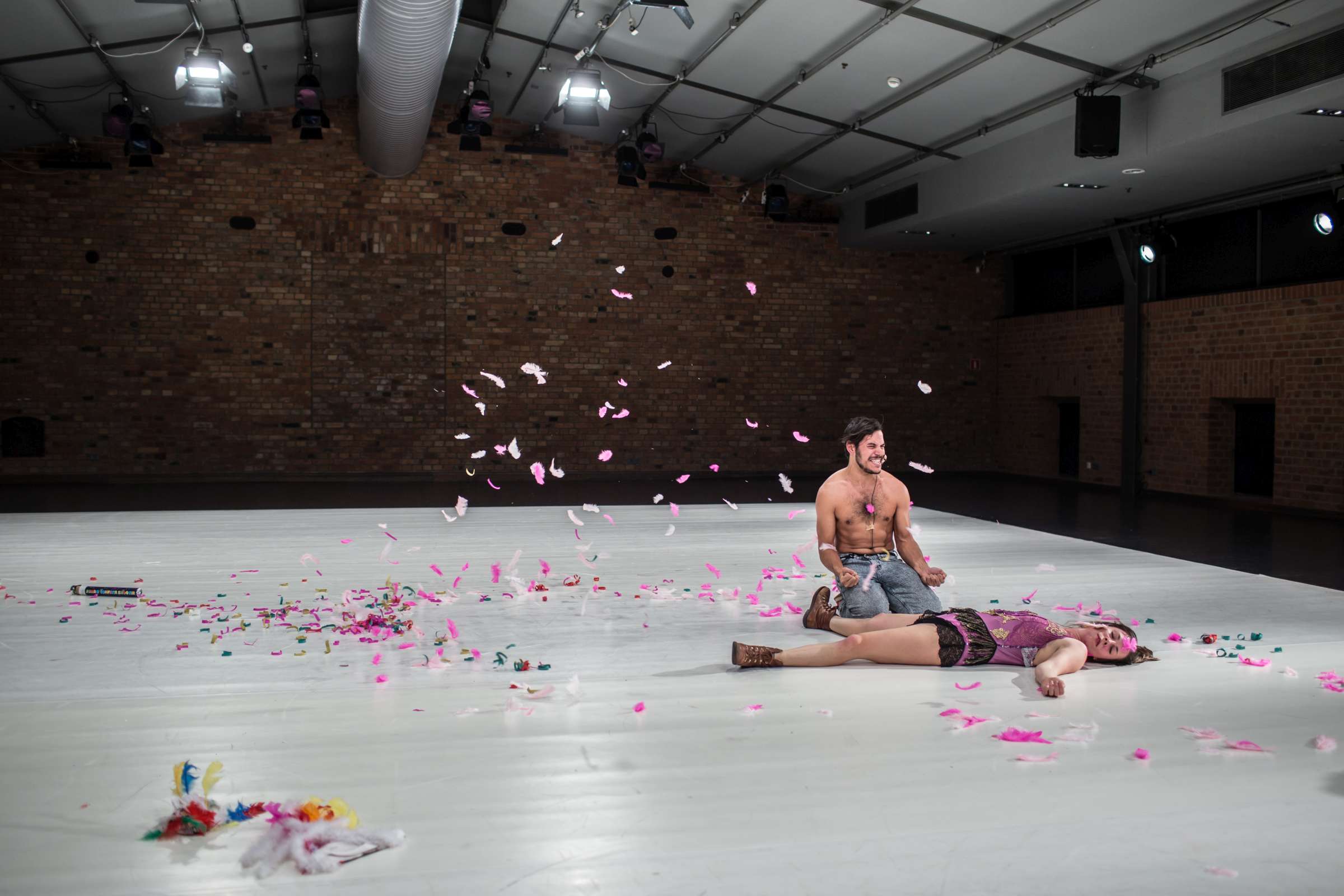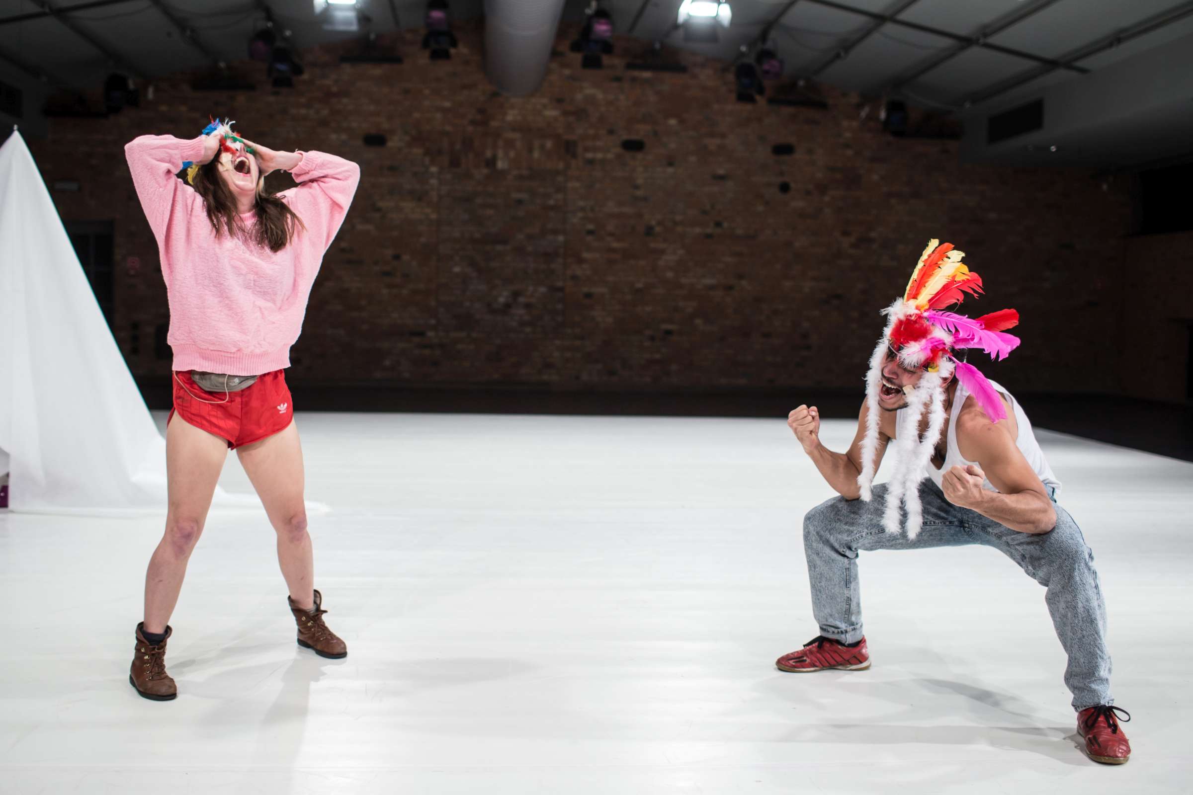 Golden Game is a collaboration of Claire Vivianne Sobottke and Tian Rotteveel on uncontrolled spaces of childhood and the body of desire. It is a catapult to childhood, to its raw emotional landscapes and the uncontrolled amplitudes emotions can have. Of the fact that children are being thrown into a world of emotions and communication without understanding them, and even to become their only means to express and connect to the concrete and abstract world. It’s a research dedicated to curiosity and playfulness, cancelling assumptions and learned behavior. It explores naïve embodiment as a detector of the symptoms in the world. It explores a body that is driven by raw desires and sensations, constantly pulled into various directions, a body not stable, but a becoming. Open the ability to enjoy transformation and having an inconsistent identity, a playable one.