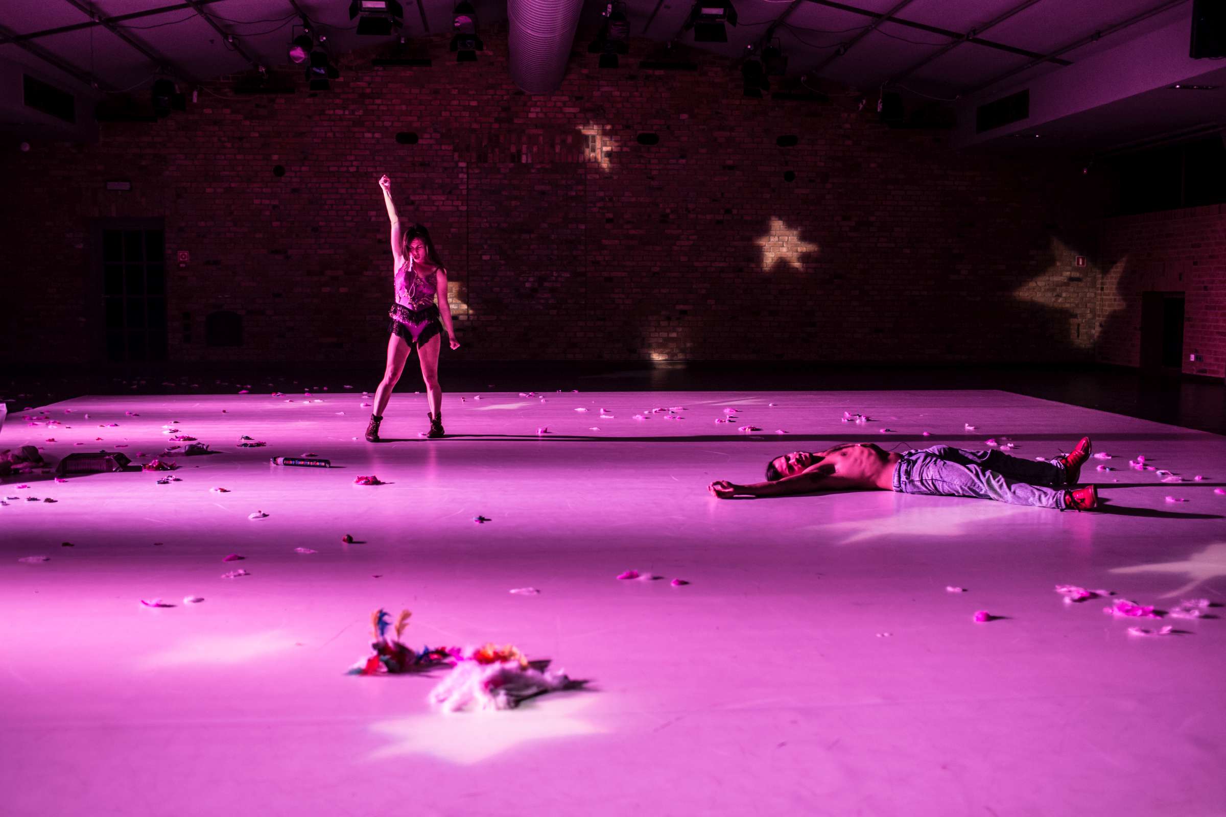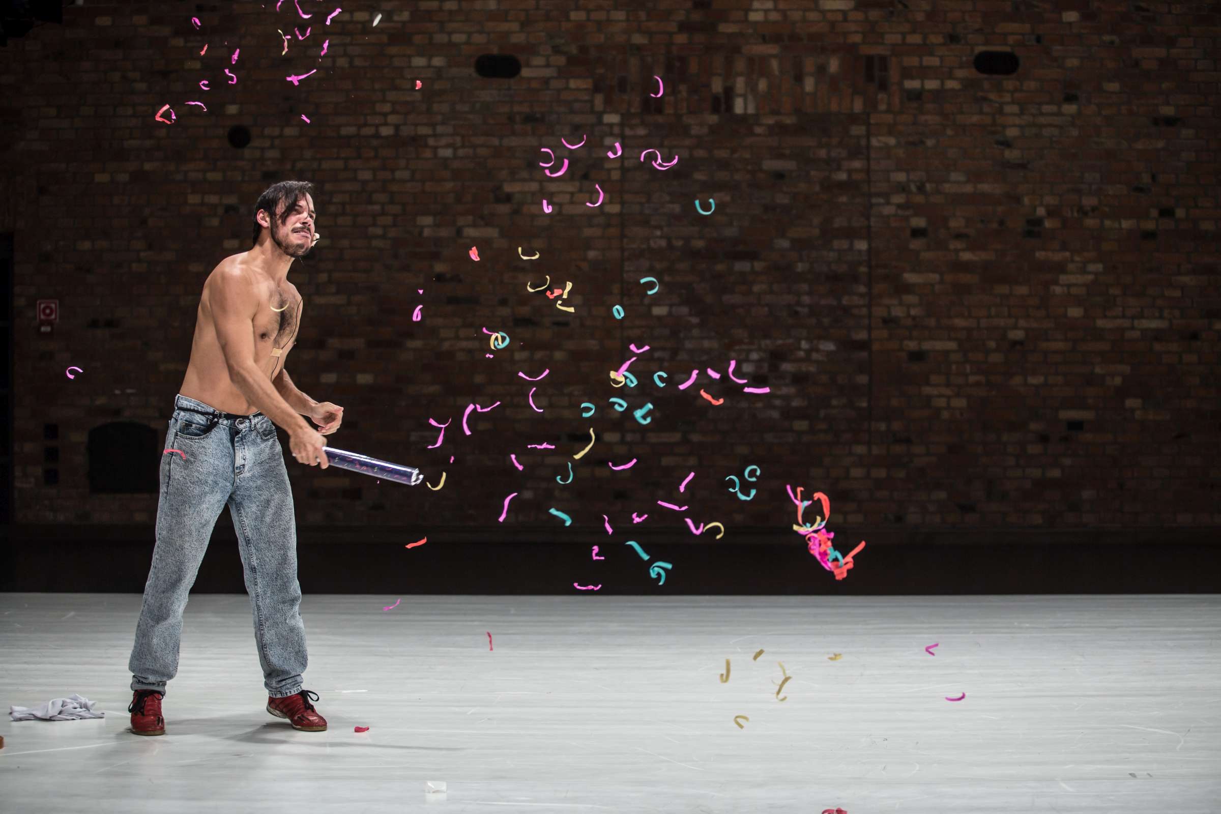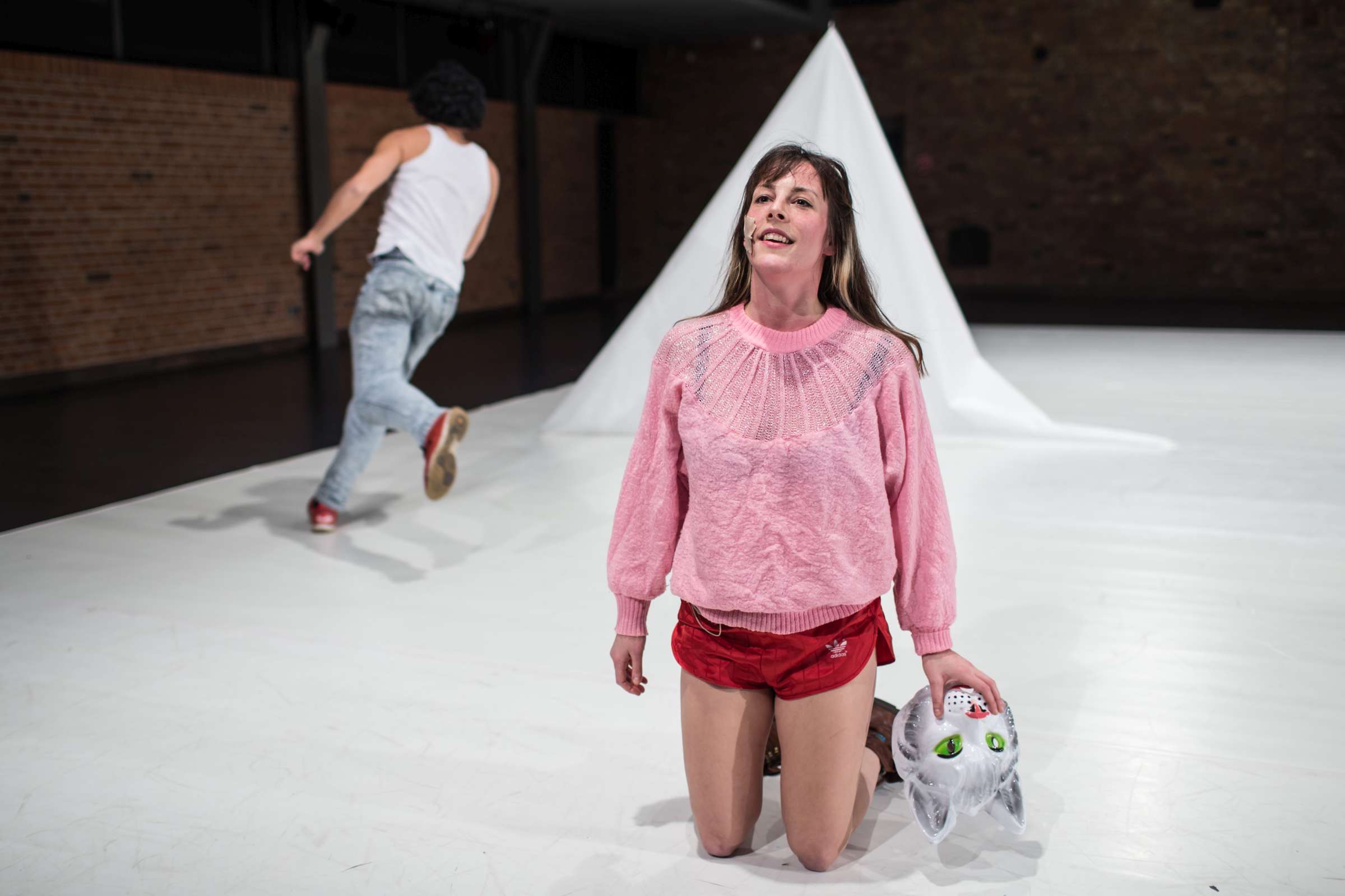 Playing physical-, word-, and mind games, with the joy of being watched playing. It understands the performer as a desiring and inventive machine incapable of not reacting to the present.