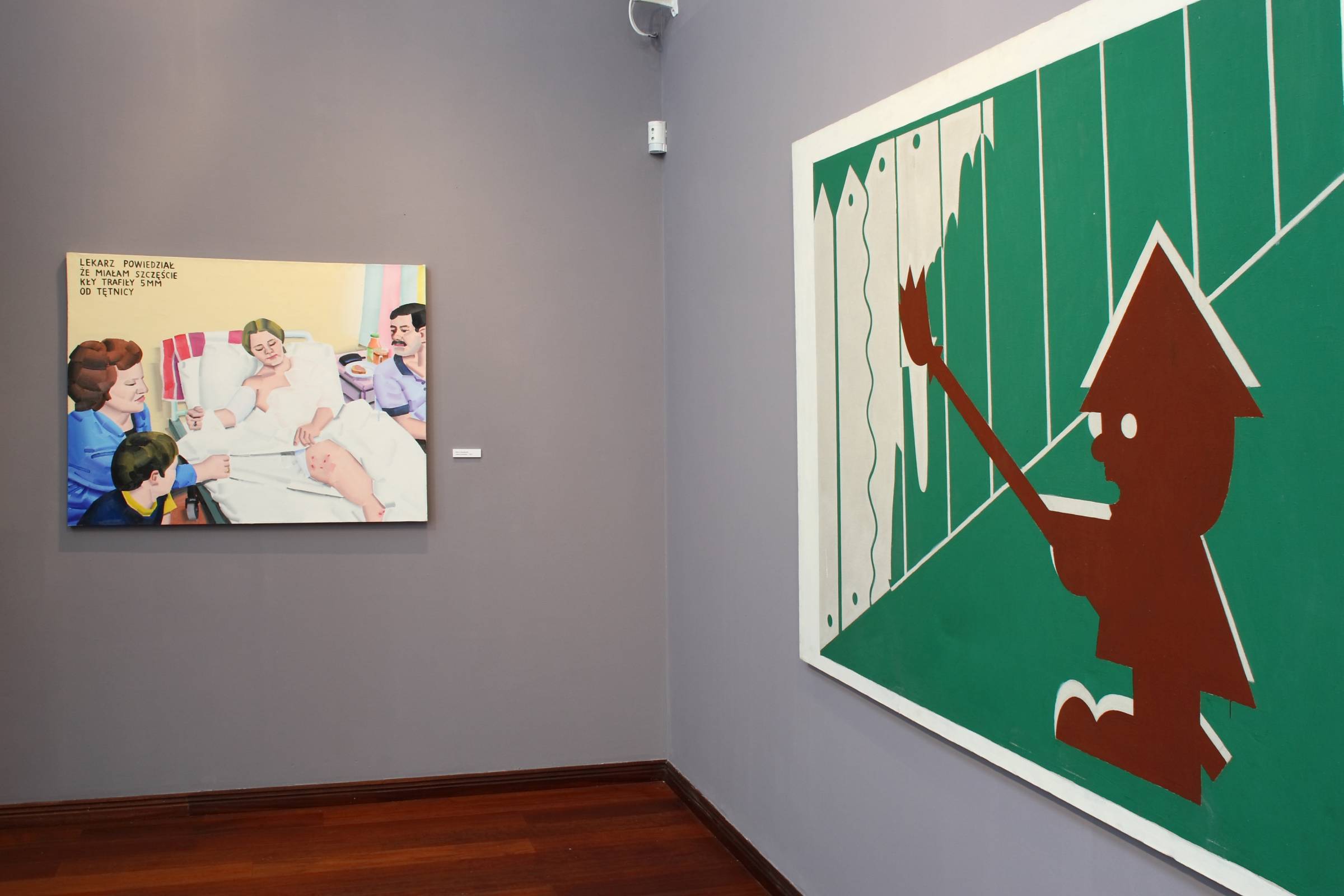 On the upper level – lit by natural light -, the works of Polish classics of modern painting has been displayed (Tomasz Ciecierski, Edward Dwurnik, Marek Sobczyk), and the co-founders of the famous Ladnie group active between 1995-2001 (Rafał Bujnowski, Marcin Maciejowski, Wilhelm Sasnal, Oskar Dawicki), as well as the works of Łukasz Skapski and the humorous, ironic objects of Janek Simon. Several works presented in this section emphasized the themes of identity and sexuality at the same time making references to culture, tradition and stereotypes, e.g. the photographs of Katarzyna Górna, Alicja Zebrowska or the latest painting cycle of Lidia Krawczyk and Wojtek Kubiak – representatives of the young generation of Kraków-based artists (series titled Genderqueer). Speaking of the artist involved in this exhibition it is impossible not to mention the work of Jadwiga Sawicka, represented by numerous paintings, objects and photographs. The whole exhibition was brought to a closure with a set of sophisticated, poetic, rich in reflection and tensions black-and-white photographs of Mikołaj Smoczynski.