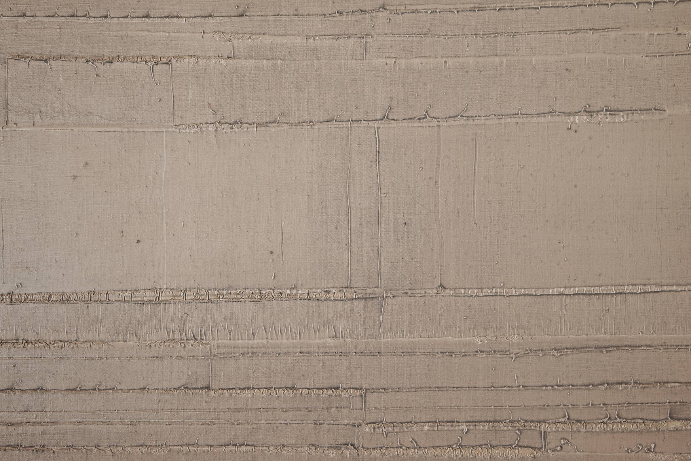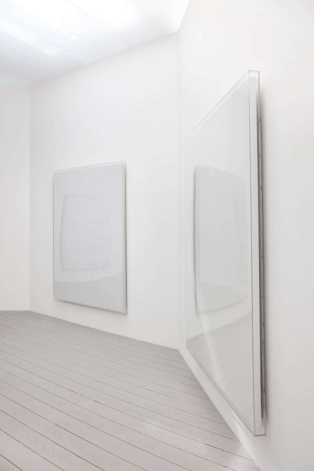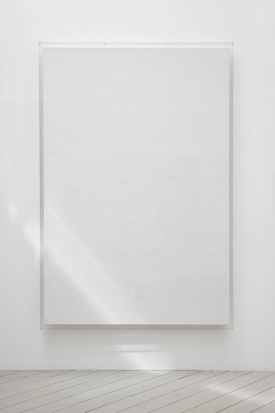 The artist began the series by covering a black background with rows of white numbers. He then continued the series on a gray background which gradually, as of 1972, has been made lighter in parallel with the increasing whitening of the rows of numbers. The process of an incremental increase of series of numbers that gradually disappear into the white background be- cause of an absence of contrast, is also recorded by the artist’s voice. The audio element is, then, not only part and parcel of the work which it documents, but is likewise a major structural component as it adds to the metaphysical dimension of the whole. Sequences of numbers that the artist has uttered throughout decades, set free from the frame of the painting, are further proof of the passage of time. In addition, as the rows of numbers are becoming ever whiter, the recordings seem in fact the sole proof of their existence in the recently finished paintings.