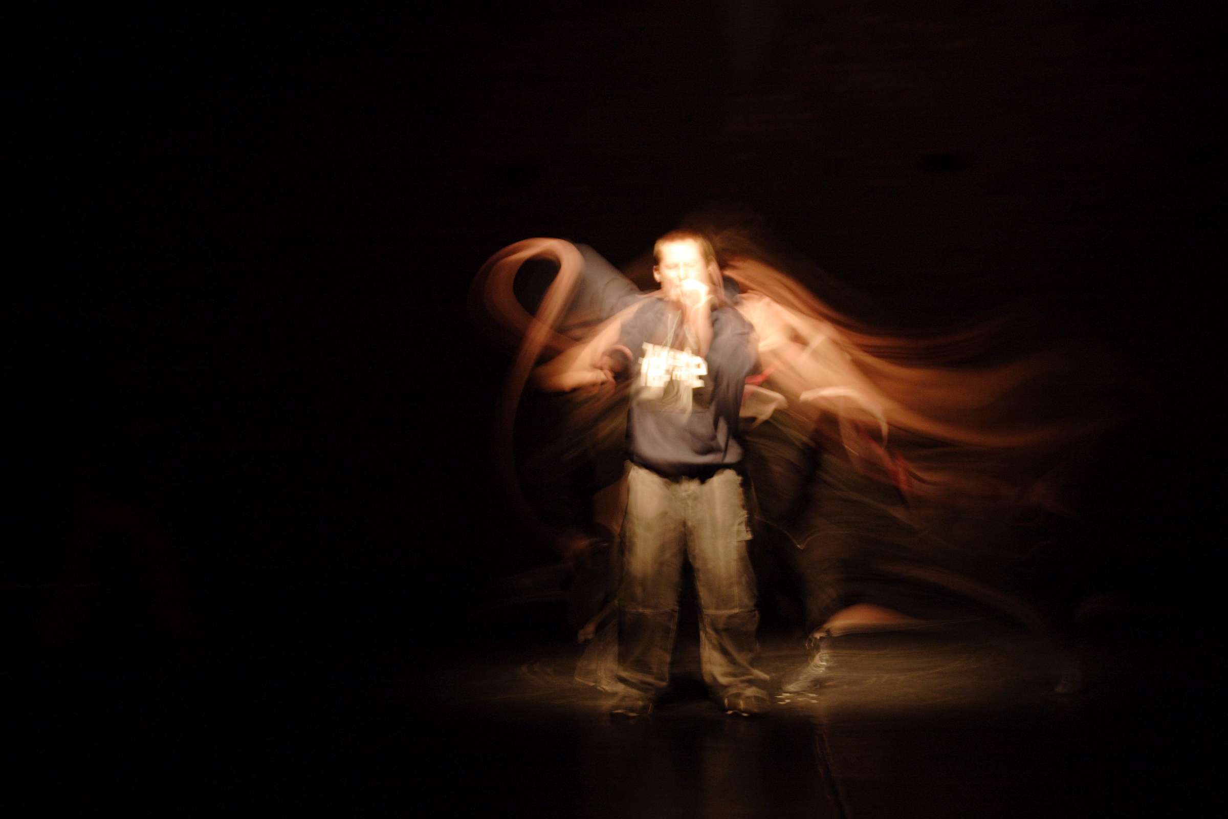 The SLAM.IN spectacle is also an attempt to contemplate the space, which appears to be the necessary condition for the existence of all beings, objects and relations. The space is sacred. Another important element of the spectacle is the relation of the word and the body. A peculiar game between the former and the later. In SLAM.IN, the word becomes an aspect of music – its component – further, becoming a component of dance. The impulses go from the word to the movement and back. Gesture initiates speech. The composition of the whole is, precisely, a complex game between the two elements.