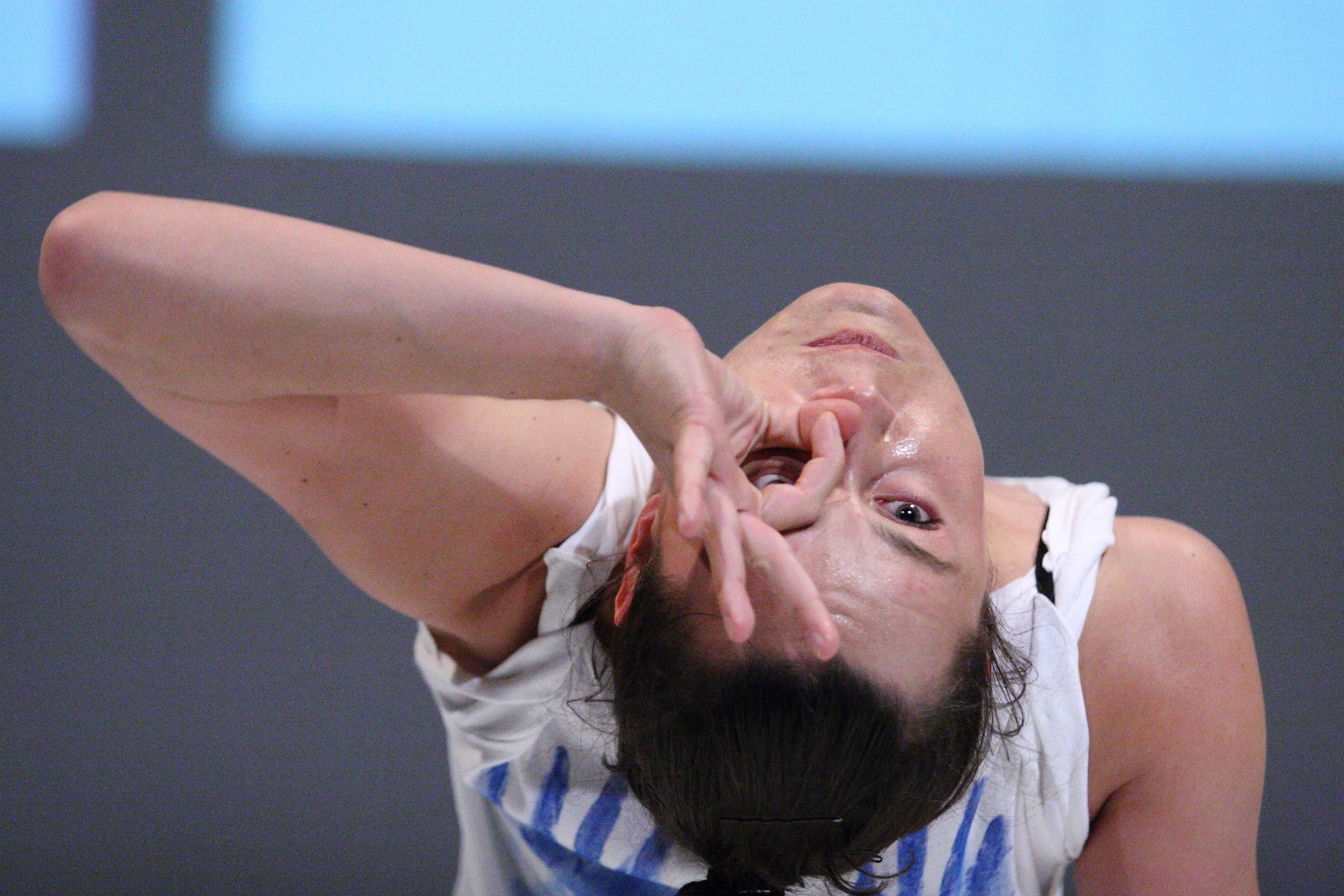 Lucky (Dominika Knapik) – figura zainspirowana postacią z „Czekając na Godota” S. Becketta, prowadzi indywidualny pokaz elementarnych cząstek nowego języka, opisując rzeczywistość, która ją ukształtowała. Ta rzeczywistość może czasem wydawać się przerażająca, ale to nie szkodzi. W końcu „nic tak nie poprawia samopoczucia jak sport”.