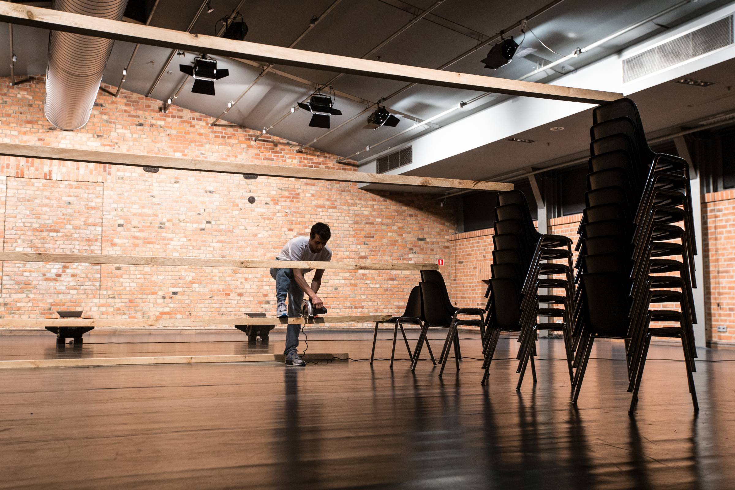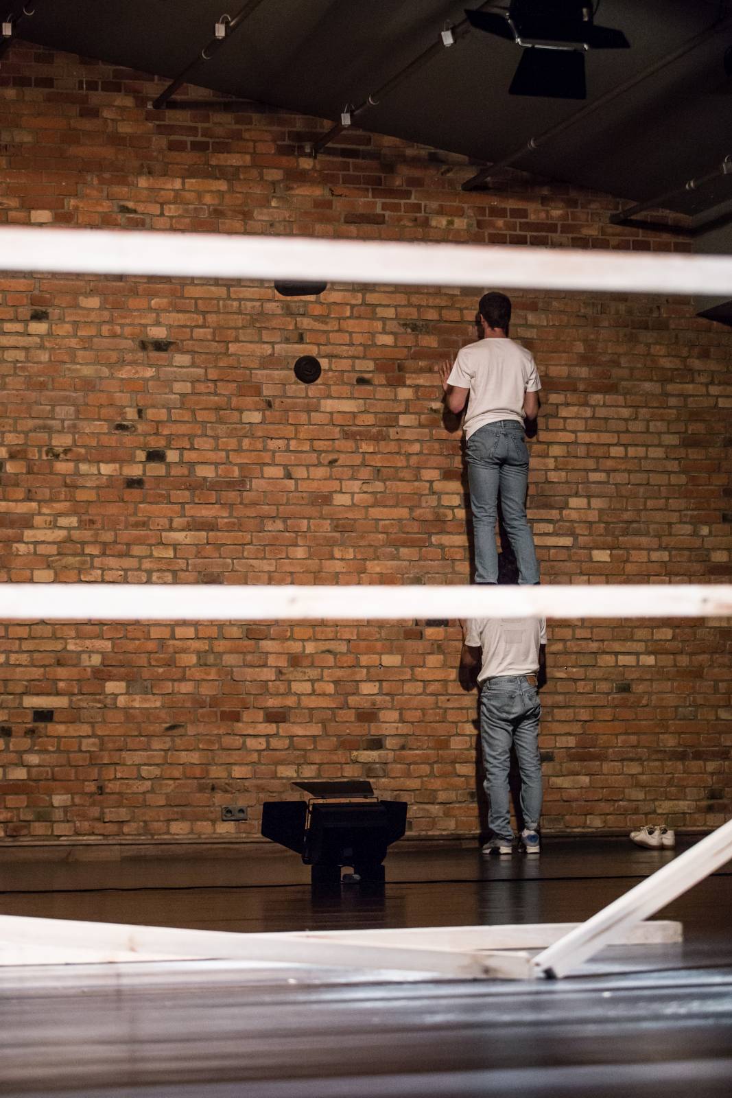Pieczołowicie kalibrując nasze zmysły, rozgłaszając nasze ciała jako środki rzeźbiarskie, oddani intuicyjnej sile roboczej, stale migrując pomiędzy różnymi konstelacjami pracy, hipnotycznie pobudzeni do spokoju działania: wydajemy materiał, jesteśmy materiałem.